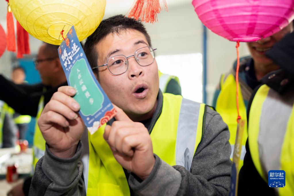 2月5日,在中建三局三公司平頂山項目部,工友在猜燈謎。