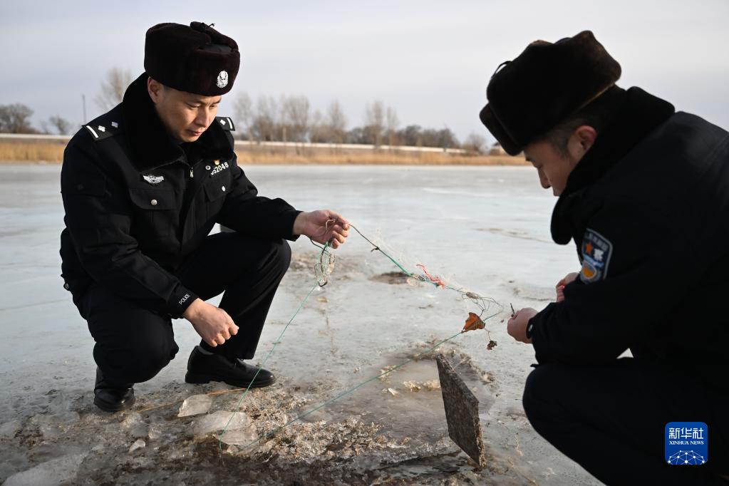2月5日,興隆沼森林公安派出所民警在奈曼孟家段國家濕地公園巡查非法捕魚(yú)情況。