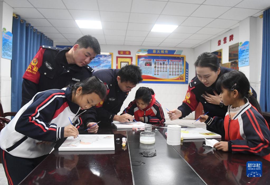 2月5日,在南寧鐵路公安局南寧公安處賓陽(yáng)站派出所,民警與三姐妹一起畫(huà)畫(huà)。家住賓陽(yáng)縣和吉鎮三叉村的呂秀清、呂秀萍和呂秀玲三姐妹,是當地的留守兒童,派出所青年民警志愿者常常利用業(yè)余時(shí)間輔導她們學(xué)習,疏導心理,至今已經(jīng)4年。