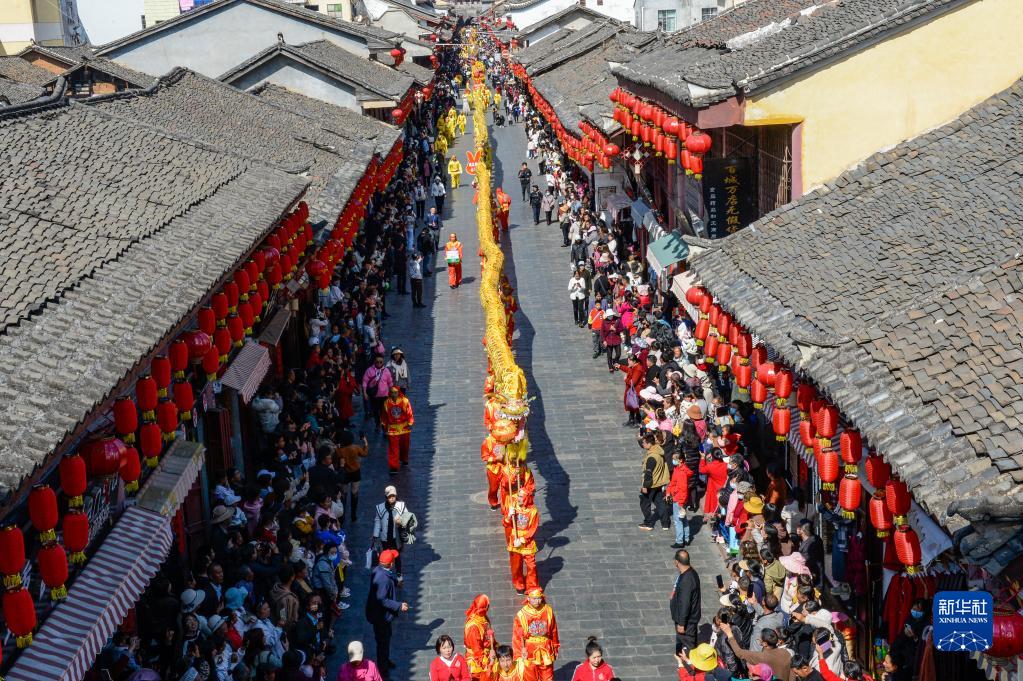 2月5日,在四川省會(huì )理市會(huì )理古城,人們在觀(guān)看舞龍表演。