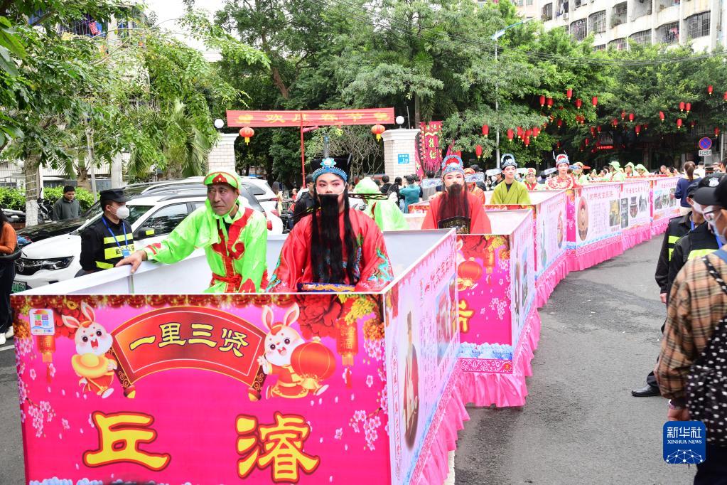 2月5日,游客在??谑协偵絽^府城觀(guān)看“裝馬匹”巡游活動(dòng)。