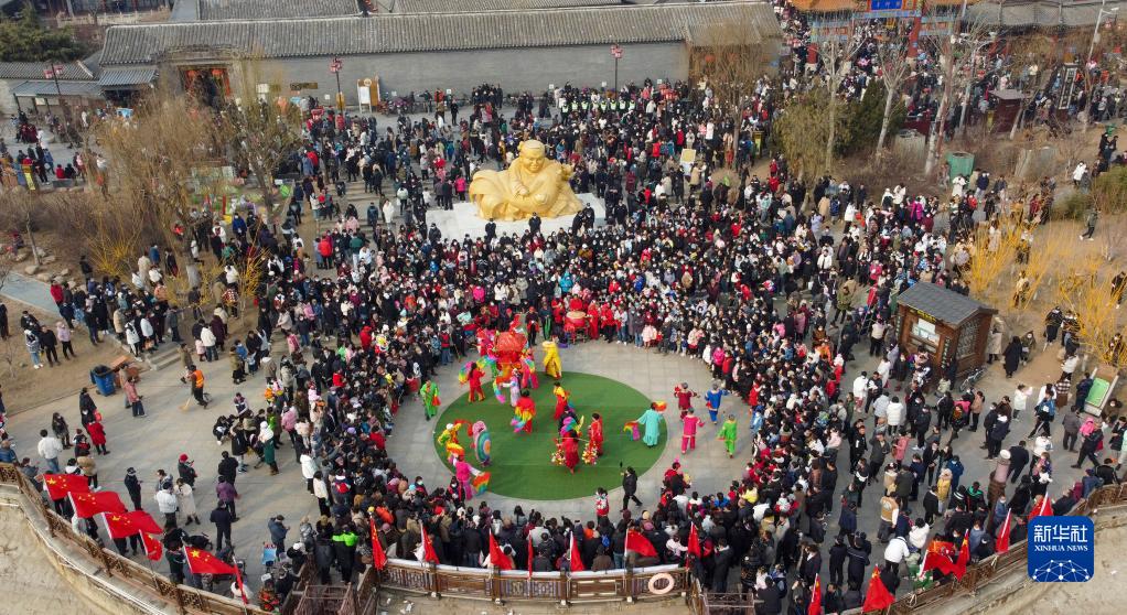 2月5日,游客在天津市西青區楊柳青古鎮觀(guān)看秧歌表演(無(wú)人機照片)。