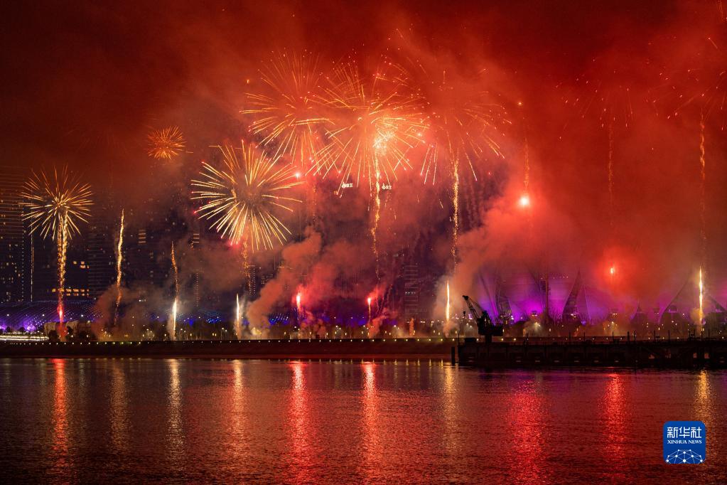 當晚,“迎亞運、慶元宵”煙花燈光秀在浙江杭州舉行。