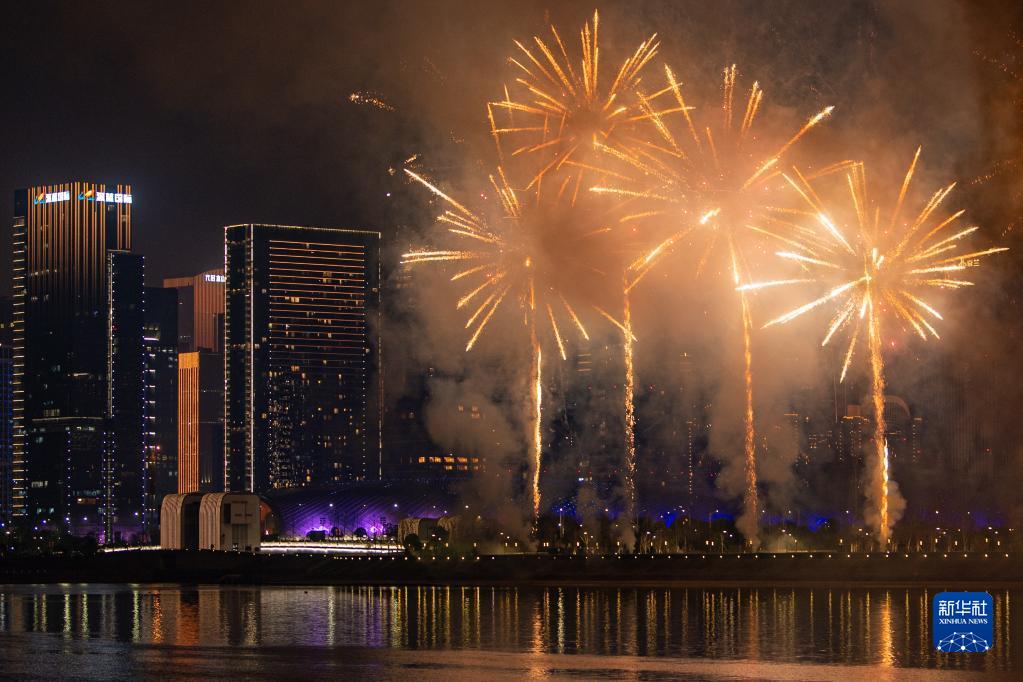 當晚,“迎亞運、慶元宵”煙花燈光秀在浙江杭州舉行。