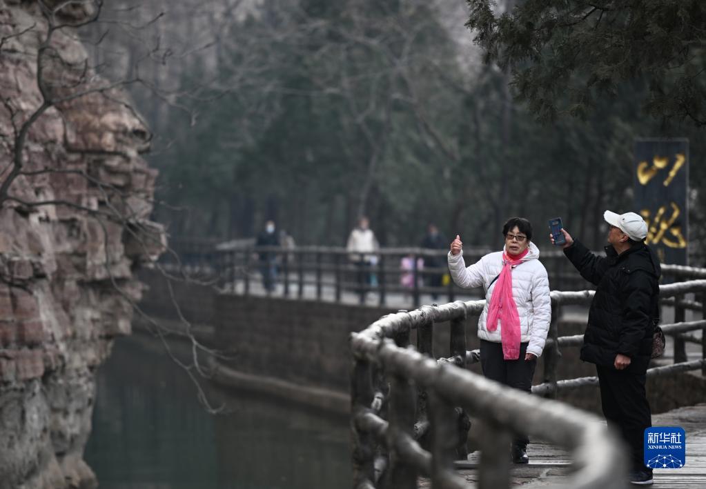 2月5日,游客游覽紅旗渠景區。