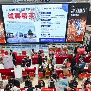 2月5日,求職者在山東省青州市舉辦的新春人才招聘會(huì )上了解崗位信息。