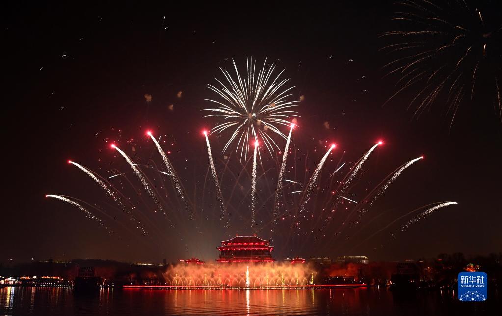 2月5日晚,2023西安曲江上元煙花晚會(huì )在大唐芙蓉園舉行。晚會(huì )上燈在水里游、人在船中舞、焰火漫天空,西安市勞模及先進(jìn)工作者、公安和消防及醫護人員等社會(huì )各界人士代表千余人和3000名市民代表相聚觀(guān)演。