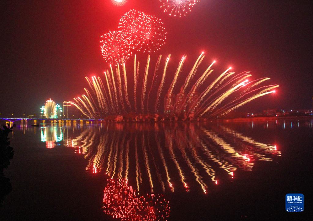 2月5日,河南省南陽(yáng)市中心城區白河上空,璀璨奪目的煙花在高空絢麗綻放,吸引許多游客、市民觀(guān)賞。