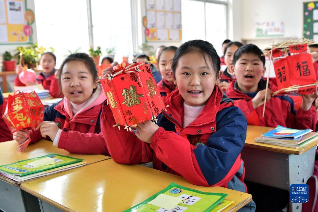 2月6日,湖北省襄陽(yáng)市??悼h城關(guān)鎮小學(xué)學(xué)生展示自己制作的寒假手工作業(yè)。
