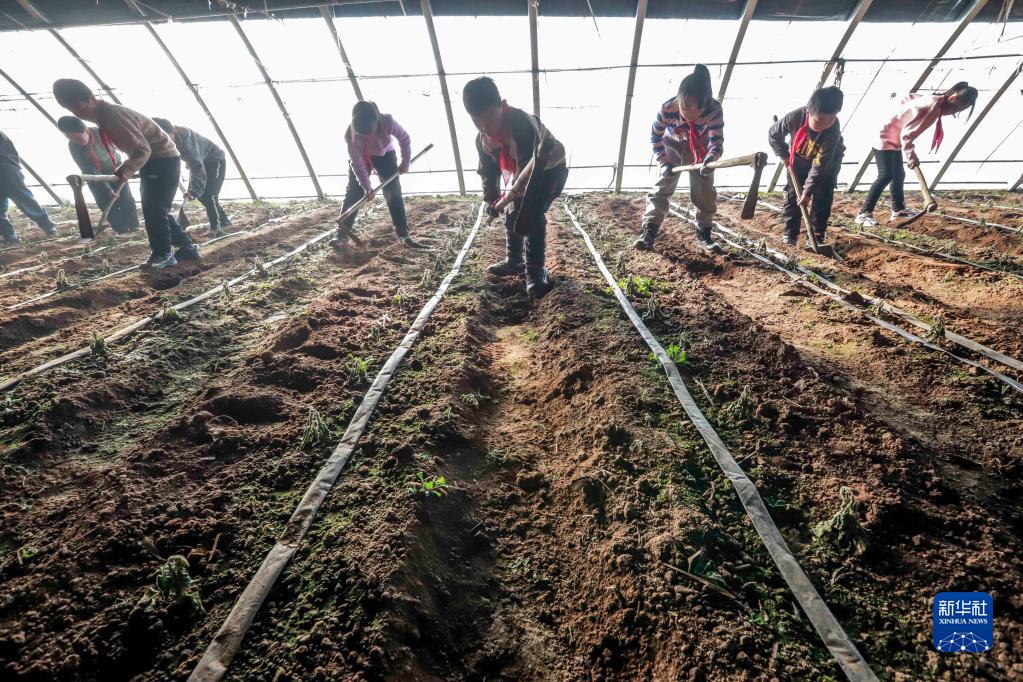 2月6日,河北省遷西縣興城鎮釣水院小學(xué)的學(xué)生在勞動(dòng)基地參加勞動(dòng)。