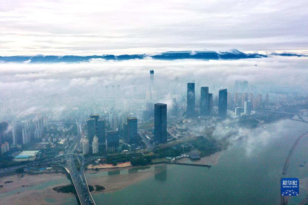 當日,福建省福州市出現平流霧景觀(guān)。