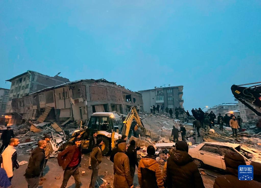 2月6日,人們聚集在土耳其馬拉蒂亞一處倒塌的建筑附近。