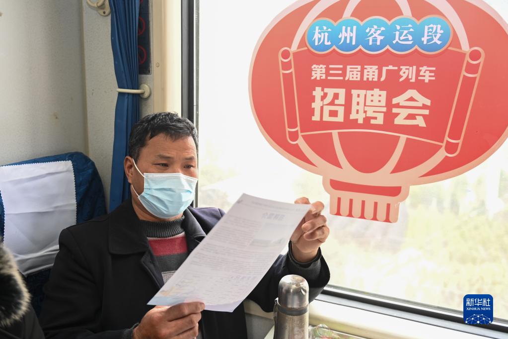 當日,中國鐵路上海局集團有限公司杭州客運段第三屆列車(chē)招聘會(huì )在由廣州開(kāi)往寧波的K210次列車(chē)上舉行,來(lái)自浙江的10家企業(yè)代表受邀來(lái)到列車(chē)上,與旅客面對面,為旅客提供暖心的就業(yè)服務(wù)。