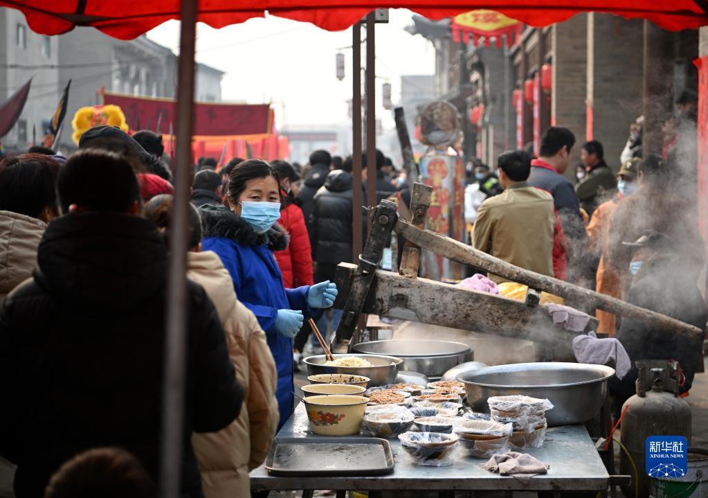 2月6日,攤販在廟會(huì )上準備小吃。