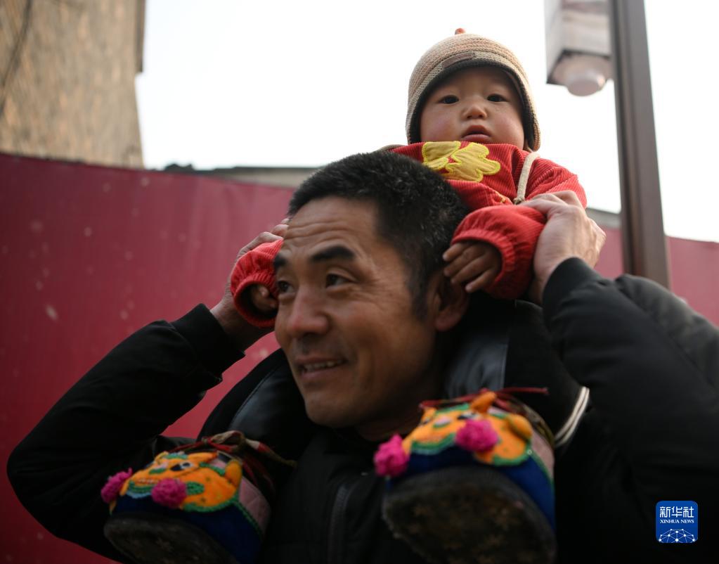 2月6日,小朋友在廟會(huì )上觀(guān)看表演。