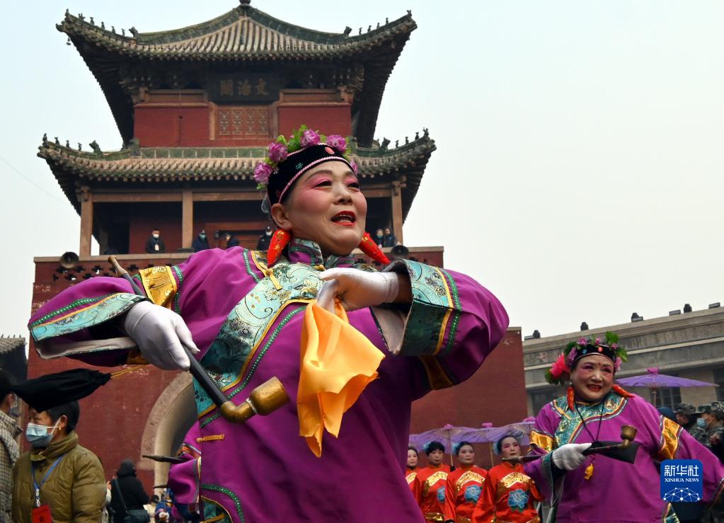 當日是農歷正月十六,在河南省??h舉行的正月古廟會(huì )上,幾十支社火團隊輪番表演,踩高蹺、扭秧歌、耍獅子,鑼鼓喧天,熱鬧非凡,形成一道富有特色的中原文化景觀(guān)。河南省??h的正月古廟會(huì )已有1600多年歷史,有“華北第一廟會(huì )”之稱(chēng),被譽(yù)為民俗文化的“活化石”,是中國民間文化保護工程項目、國家級非物質(zhì)文化遺產(chǎn)。