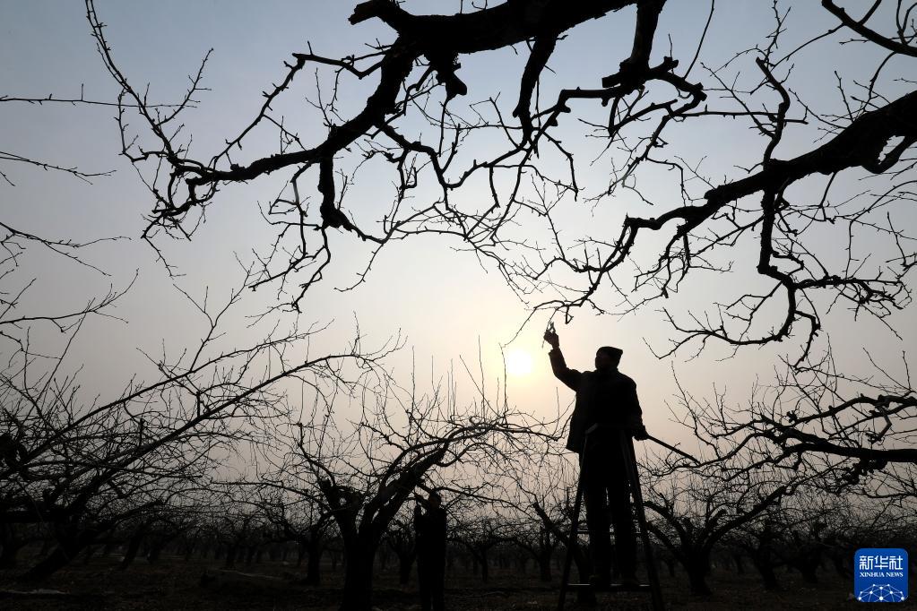 2月6日,石家莊市趙縣精園梨果專(zhuān)業(yè)合作社果農在梨園給梨樹(shù)修剪枝條。