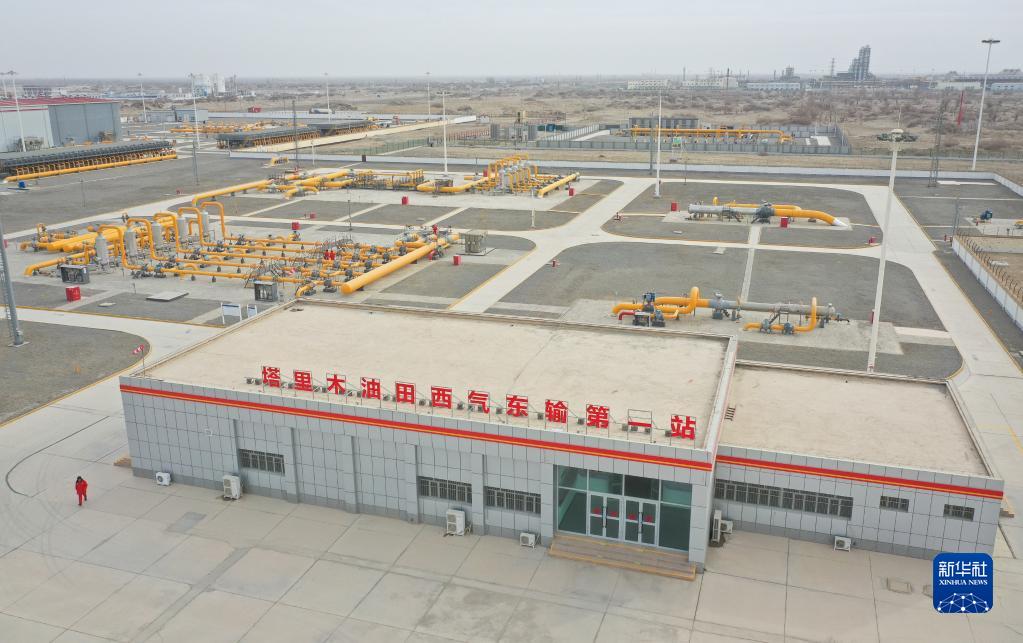 這是2月6日拍攝的塔里木油田西氣東輸第一站(無(wú)人機照片)。