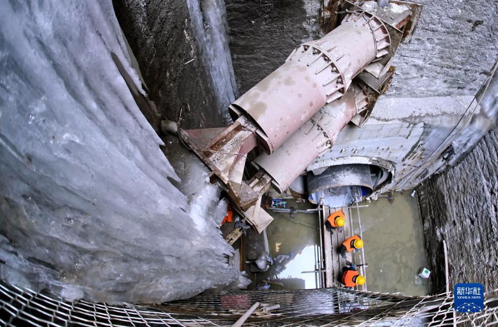 2月6日,工人在南水北調配套工程北京大興支線(xiàn)機場(chǎng)連接線(xiàn)的地下工地施工。