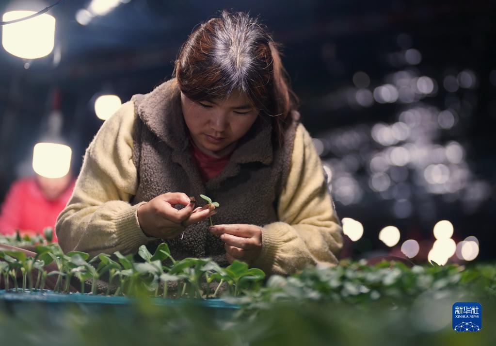 初春時(shí)節,河北唐山灤州市的農民開(kāi)始播種、嫁接果蔬秧苗,田間地頭一派繁忙。