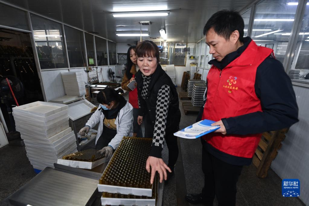 2月7日,在杭州市臨安區太陽(yáng)鎮的一家玻璃制品企業(yè)車(chē)間內,黨員助企服務(wù)小分隊的志愿者向企業(yè)負責人(右二)了解企業(yè)目前遇到的實(shí)際困難。