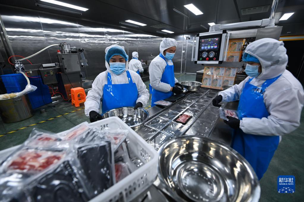 2月7日,在杭州市臨安區太陽(yáng)鎮的一家食品企業(yè)車(chē)間內,工人為趕制訂單加緊生產(chǎn)。這是一家預制菜生產(chǎn)企業(yè),近年來(lái)預制菜的熱銷(xiāo)讓這家企業(yè)訂單緊俏。