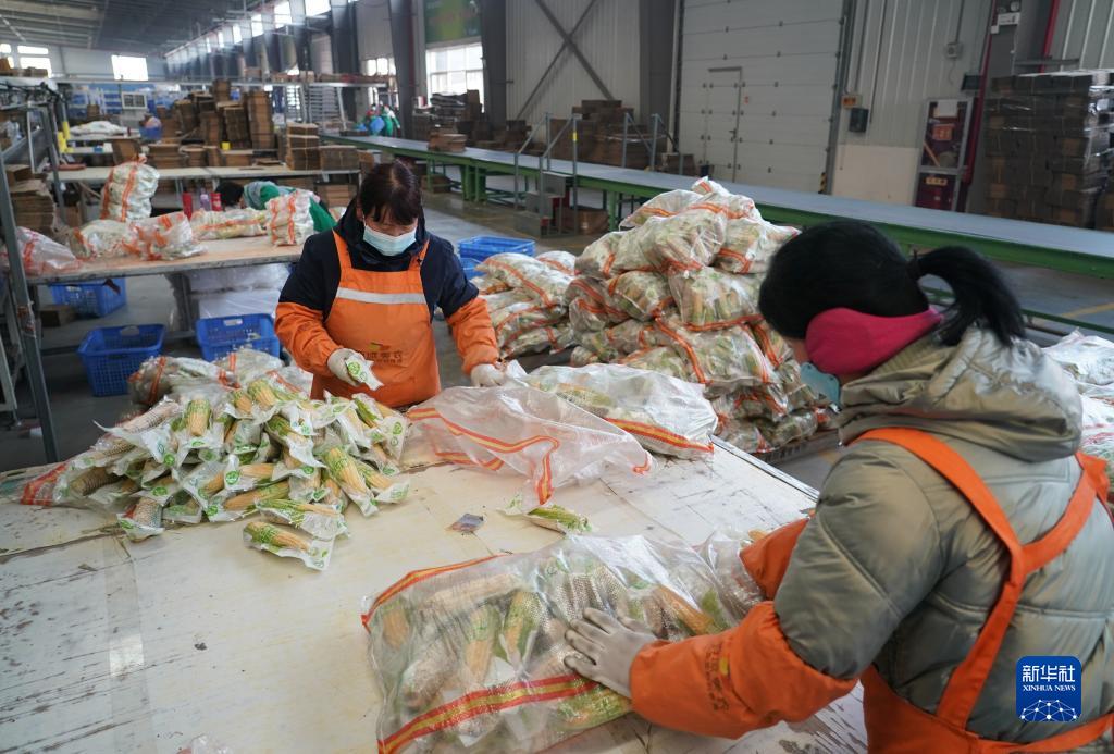 2月6日,在位于武功縣的陜西美農網(wǎng)絡(luò )科技有限公司物流倉,工作人員在處理食品包裹。