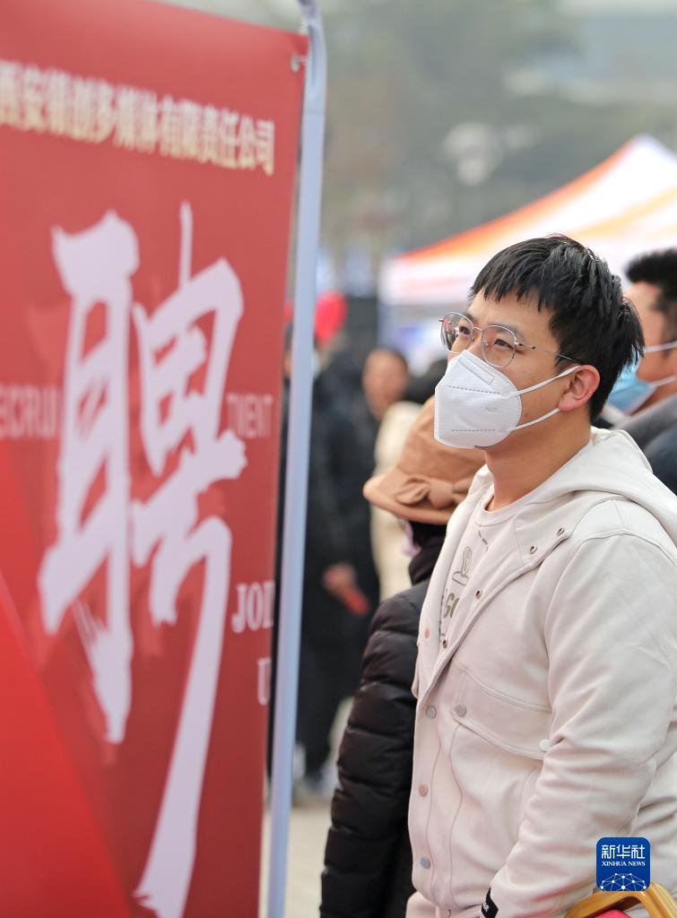 2月7日,求職者在陜西省渭南市臨渭區中心廣場(chǎng)招聘會(huì )現場(chǎng)尋找心儀崗位。