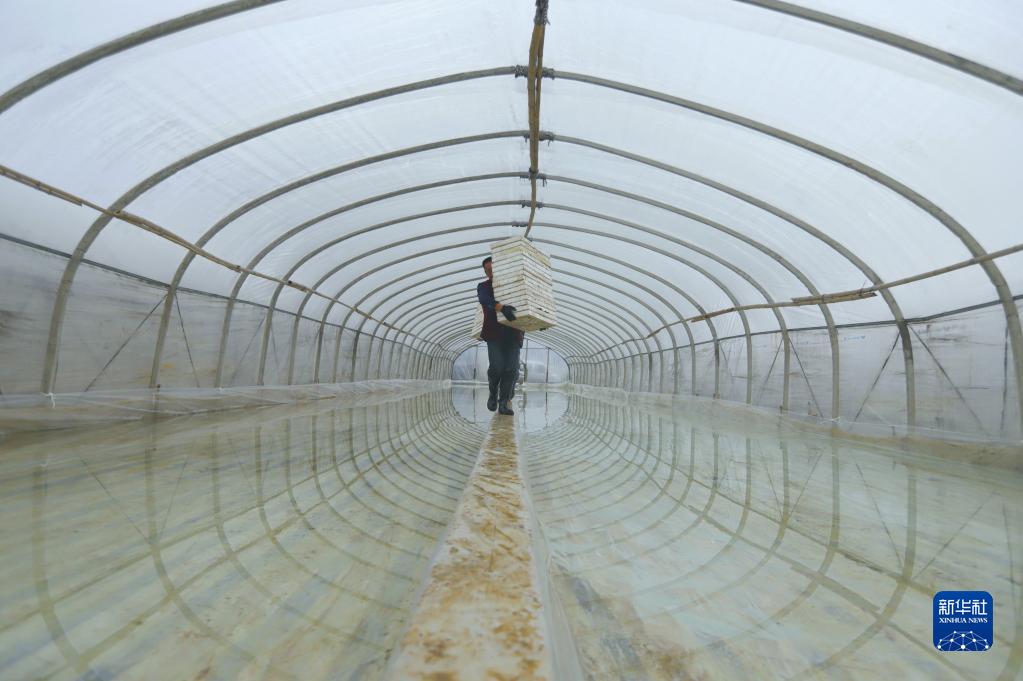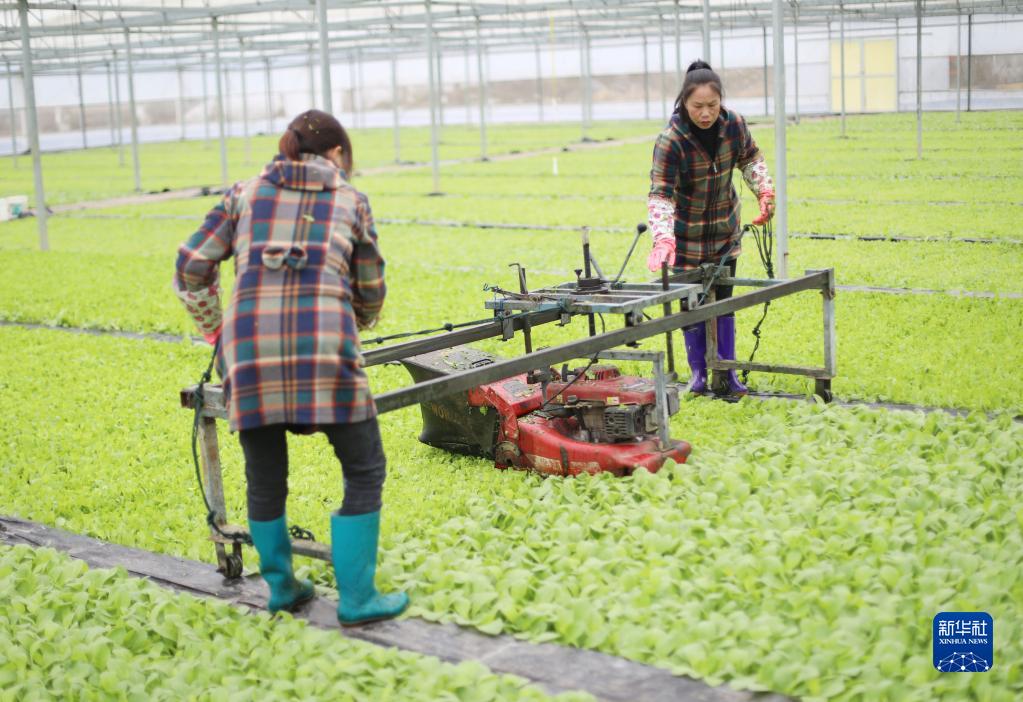 2月7日,在湖南省永州市道縣營(yíng)江街道上汶村,村民在大棚里忙碌。