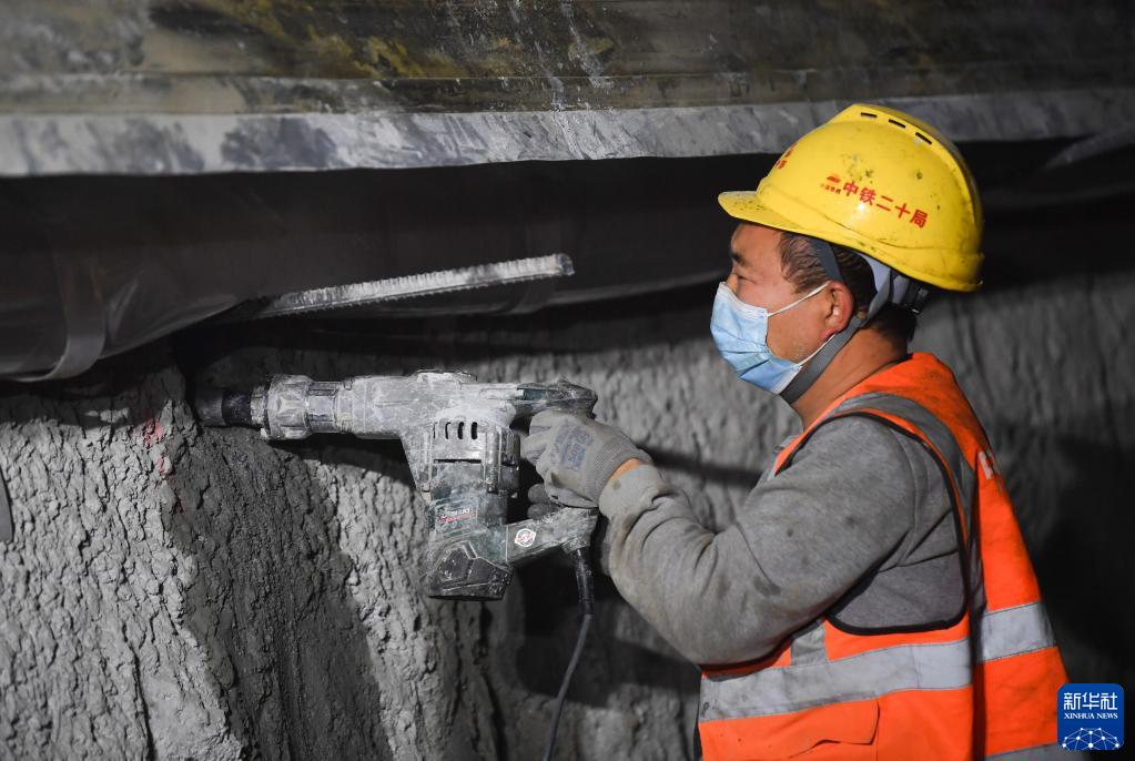 2月7日,中鐵二十局工人在位于陜西省商洛市的西十高鐵南秦隧道施工現場(chǎng)作業(yè)。