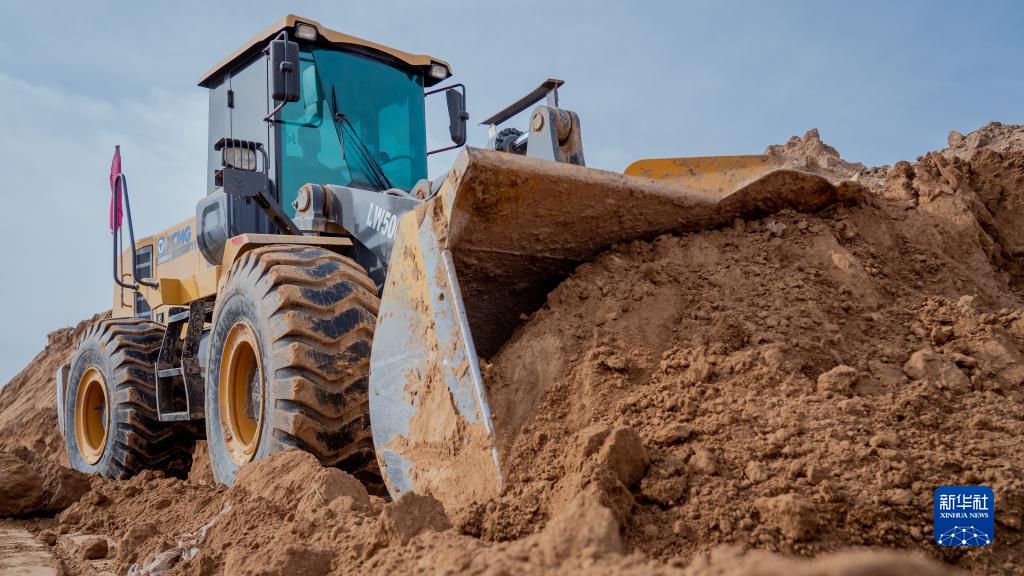 2月7日,工人操作推土機在寧夏固原市西吉縣硝河鄉蘇溝村平整土地。