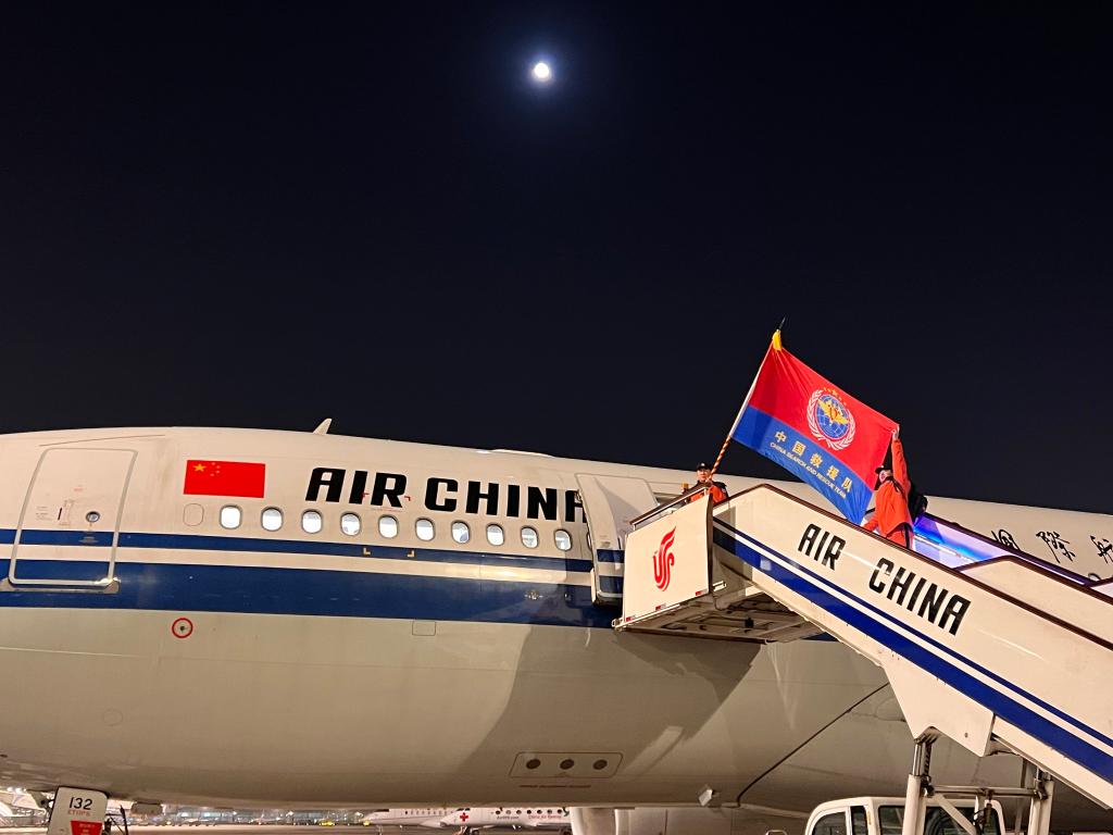 2月7日,中國救援隊隊員登上國航包機,從首都機場(chǎng)出發(fā)飛赴災區(手機拍攝)。