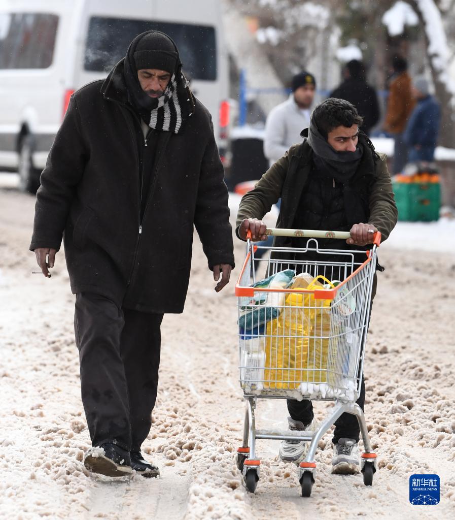 2月7日,在土耳其卡赫拉曼馬拉什省的埃爾比斯坦地區,當地居民在街頭運輸物資。