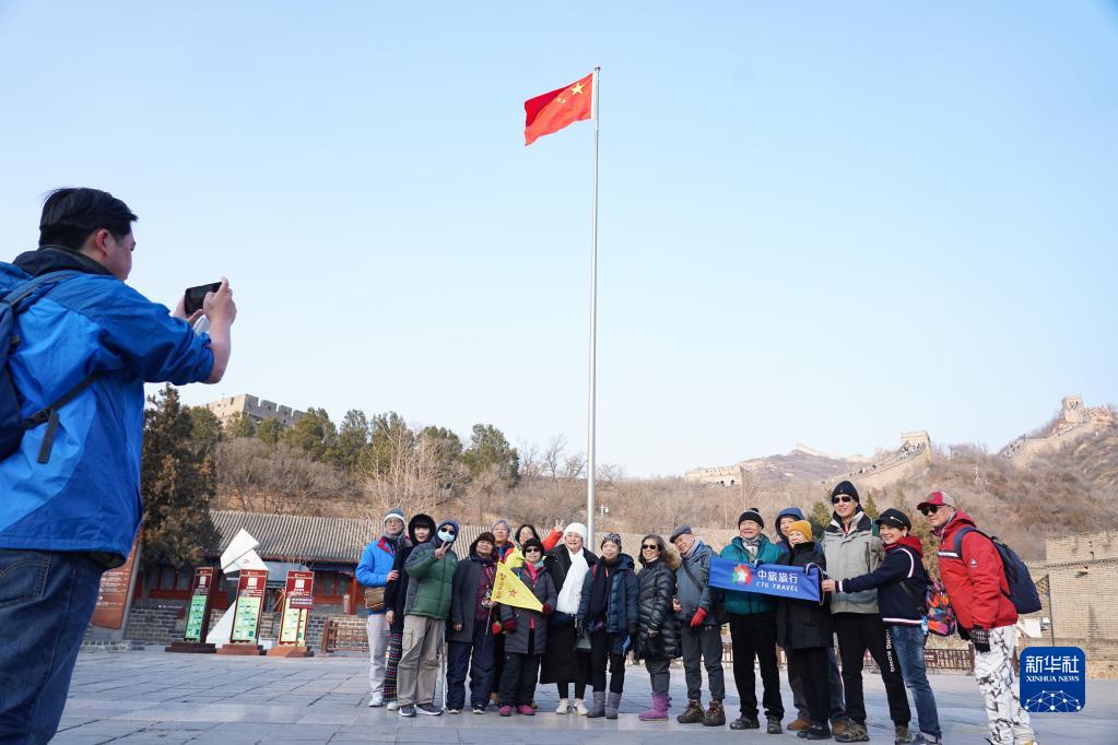 2月7日,香港“銀發(fā)族”們在北京八達嶺長(cháng)城合影留念。