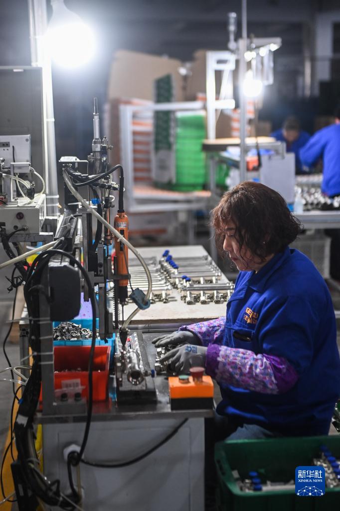 2月7日,在店口鎮的浙江潔利達暖通科技有限公司車(chē)間內,工人在生產(chǎn)線(xiàn)上加工產(chǎn)品。