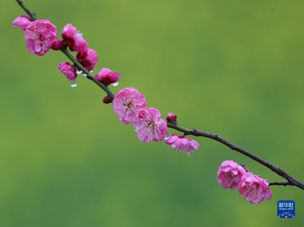 2月7日在湖南省衡陽(yáng)市衡陽(yáng)縣西渡鎮梅花村拍攝的春雨后的梅花。
