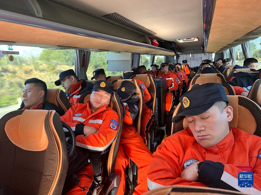 2月8日上午,中國救援隊在土耳其阿達納機場(chǎng)集合完畢后,集體搭乘長(cháng)途大巴奔赴地震重災區哈塔伊省參加救援行動(dòng)(手機拍攝)。