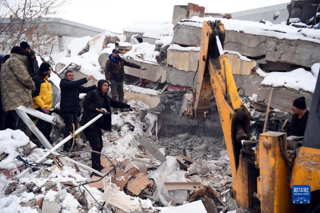 2月7日,在土耳其卡赫拉曼馬拉什省南部的埃爾比斯坦地區,救援人員在一處地震廢墟搜救。