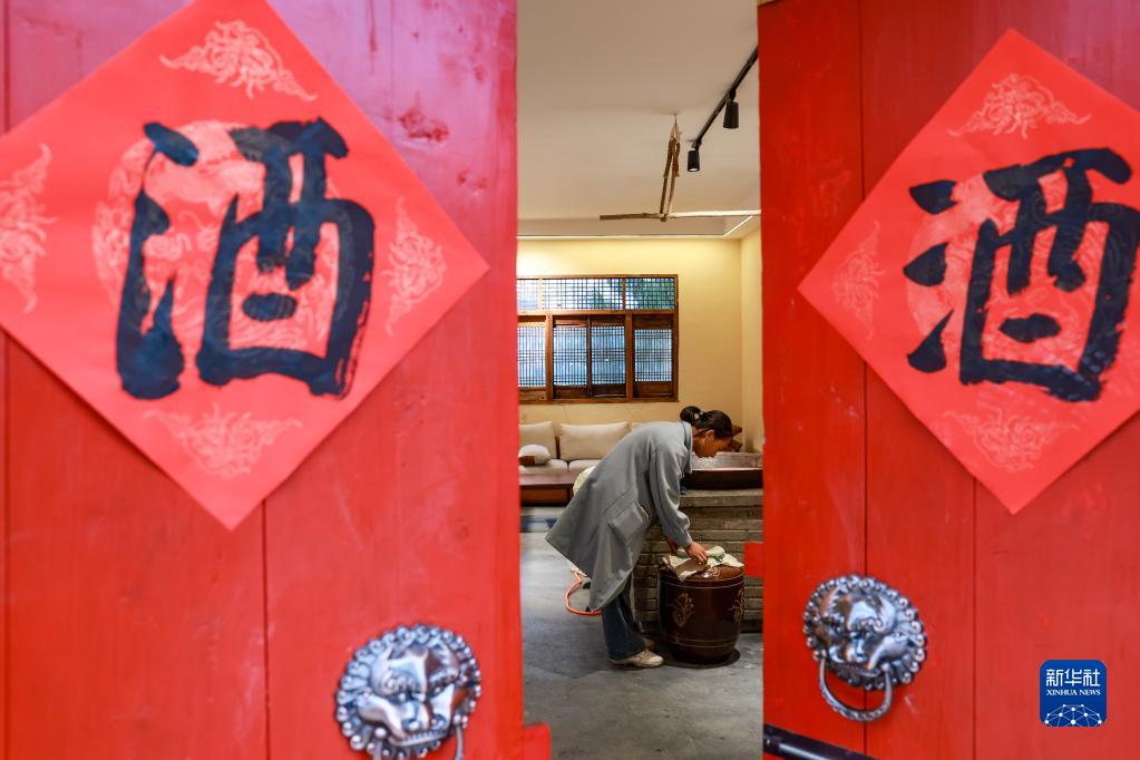 團結村村民在自家經(jīng)營(yíng)的煙酒店內擺放貨物(2月2日攝)。