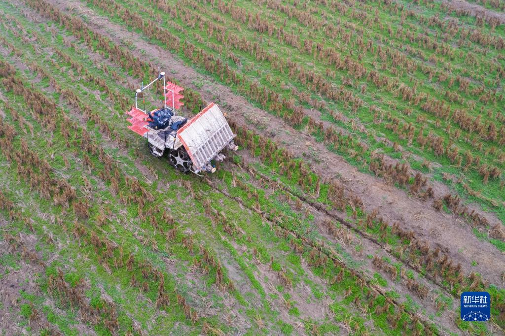 2月8日,一輛無(wú)人駕駛插秧機在鼎城區國家現代農業(yè)產(chǎn)業(yè)園田間調試(無(wú)人機照片)。