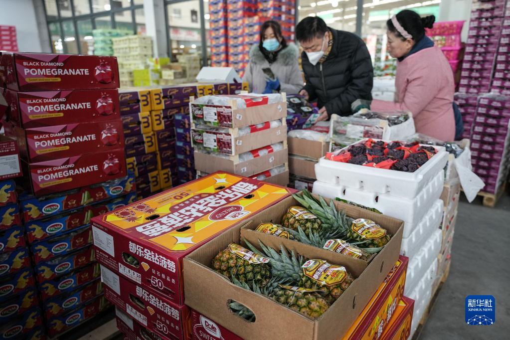 2月7日,顧客在東北新發(fā)地農產(chǎn)品供應鏈中心選購水果。