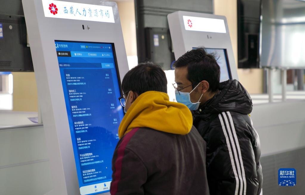 2月8日,求職者在西藏2023年“春風(fēng)行動(dòng)”暨就業(yè)援助月招聘活動(dòng)現場(chǎng)尋找崗位。