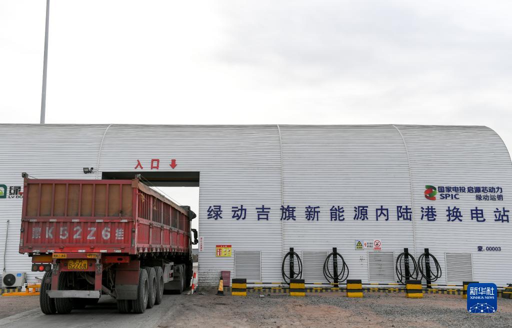 2月8日,在鄂爾多斯市東勝區綠動(dòng)萬(wàn)利新能源智慧陸港,新能源重卡進(jìn)行全自動(dòng)換電。