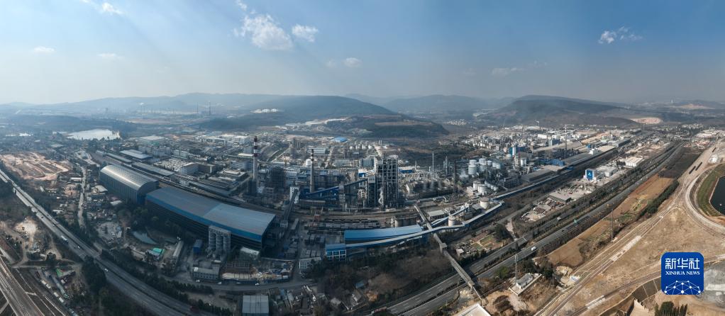 2月8日拍攝的云天化集團天安化工磷肥制造中心(無(wú)人機照片)。