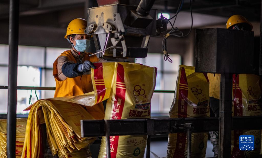2月8日,工人在云天化集團天安化工磷肥制造中心生產(chǎn)線(xiàn)上進(jìn)行袋裝操作。
