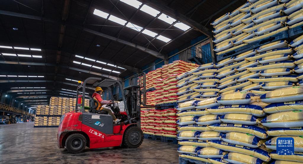 2月8日,工人在云天化集團天安化工磷肥制造中心生產(chǎn)線(xiàn)上進(jìn)行運輸作業(yè)。