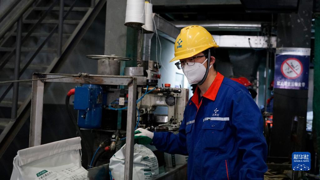 2月8日,在青海云天化國際化肥有限公司,工作人員在檢查產(chǎn)品質(zhì)量。