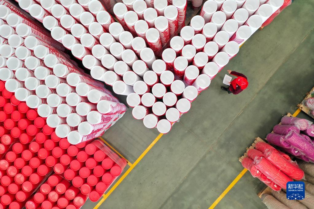 2月2日,在位于河北省唐山市豐南區的唐山東方雨虹防水技術(shù)有限責任公司,工人在核對產(chǎn)品清單(無(wú)人機照片)。