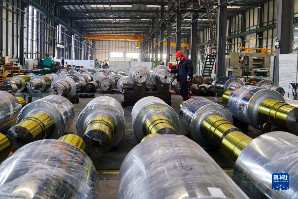 2月6日,在位于河北邢臺經(jīng)濟開(kāi)發(fā)區的邢臺納科諾爾精軋科技股份有限公司,工人在檢測軋輥尺寸。