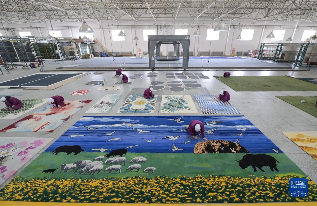 在圣源地毯集團有限公司生產(chǎn)車(chē)間,一縷縷高原優(yōu)質(zhì)的牛羊毛經(jīng)過(guò)工人編結、栽絨、紡織后,被制作成為一張張毛質(zhì)優(yōu)良、技藝獨特、圖案典雅的地毯。